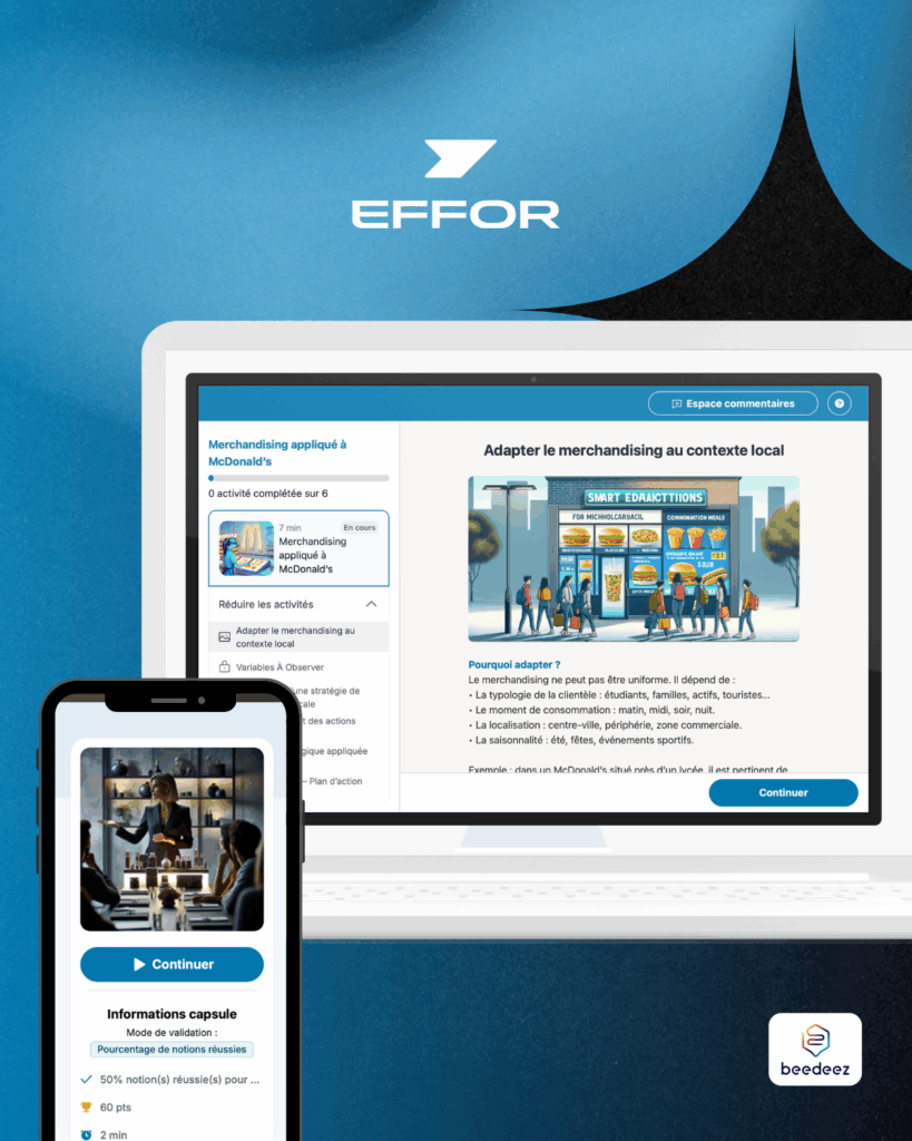 Le développement de cette plateforme n’aurait pas été possible sans le partenariat avec Beedeez, solution française spécialisée dans le mobile learning et l’apprentissage gamifié.